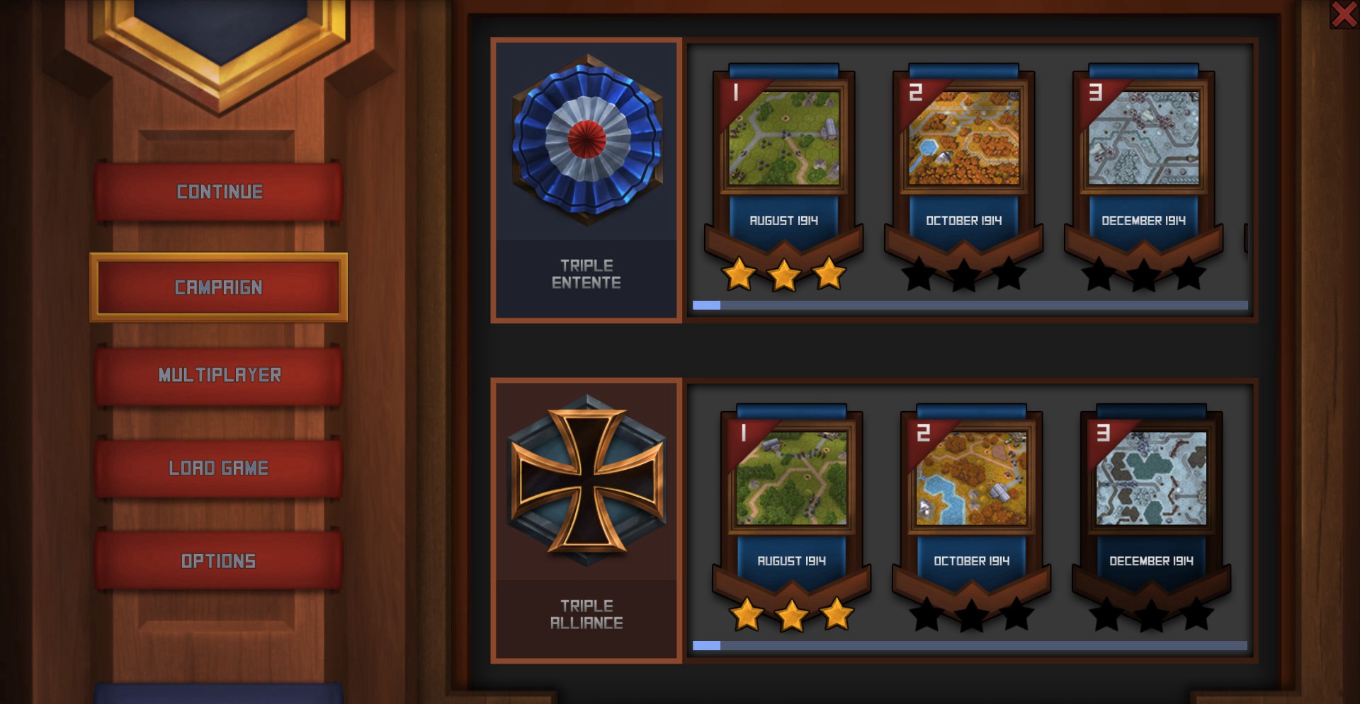 《战争之魂(Spirit of War)》是一款典型的策略战棋游戏,它以第一次世界大战为主战场,讲述了协约国和同盟国之间的战争。游戏分单人战役模式和多人游戏模式两种,相当于剧情和对战两种模式。对战模式是同屏的双人对战,有点在下棋的感觉,而且还可以途中保存。而战役模式中,玩家可以选择协约国阵营或同盟国阵营,从萨拉热窝事件开始,一关一关地亲历这场世界大战的开始与结束。游戏基本涵盖了1914年至1918年大战的主要事件和战役,这点倒是十分符合历史军迷用户的胃口。