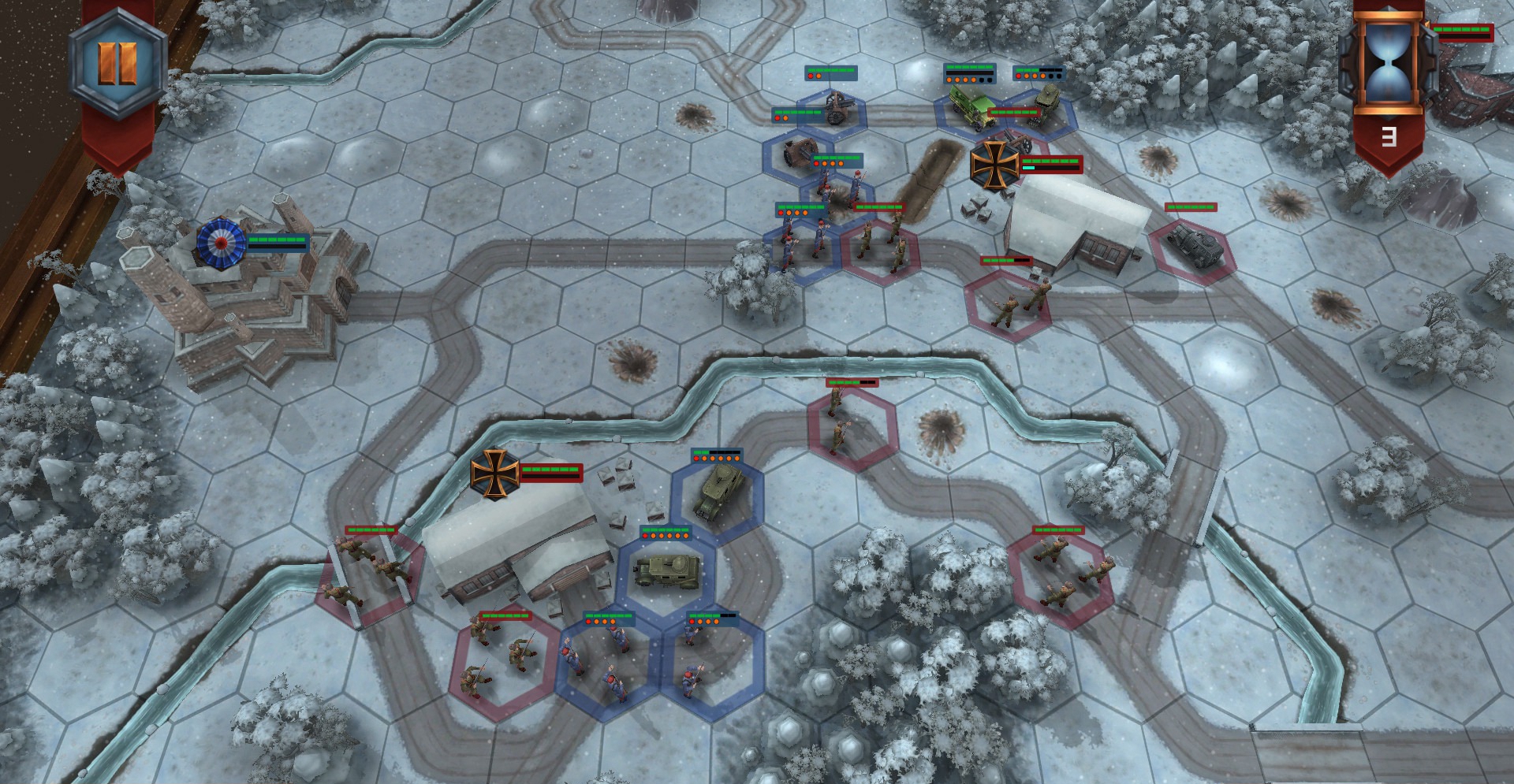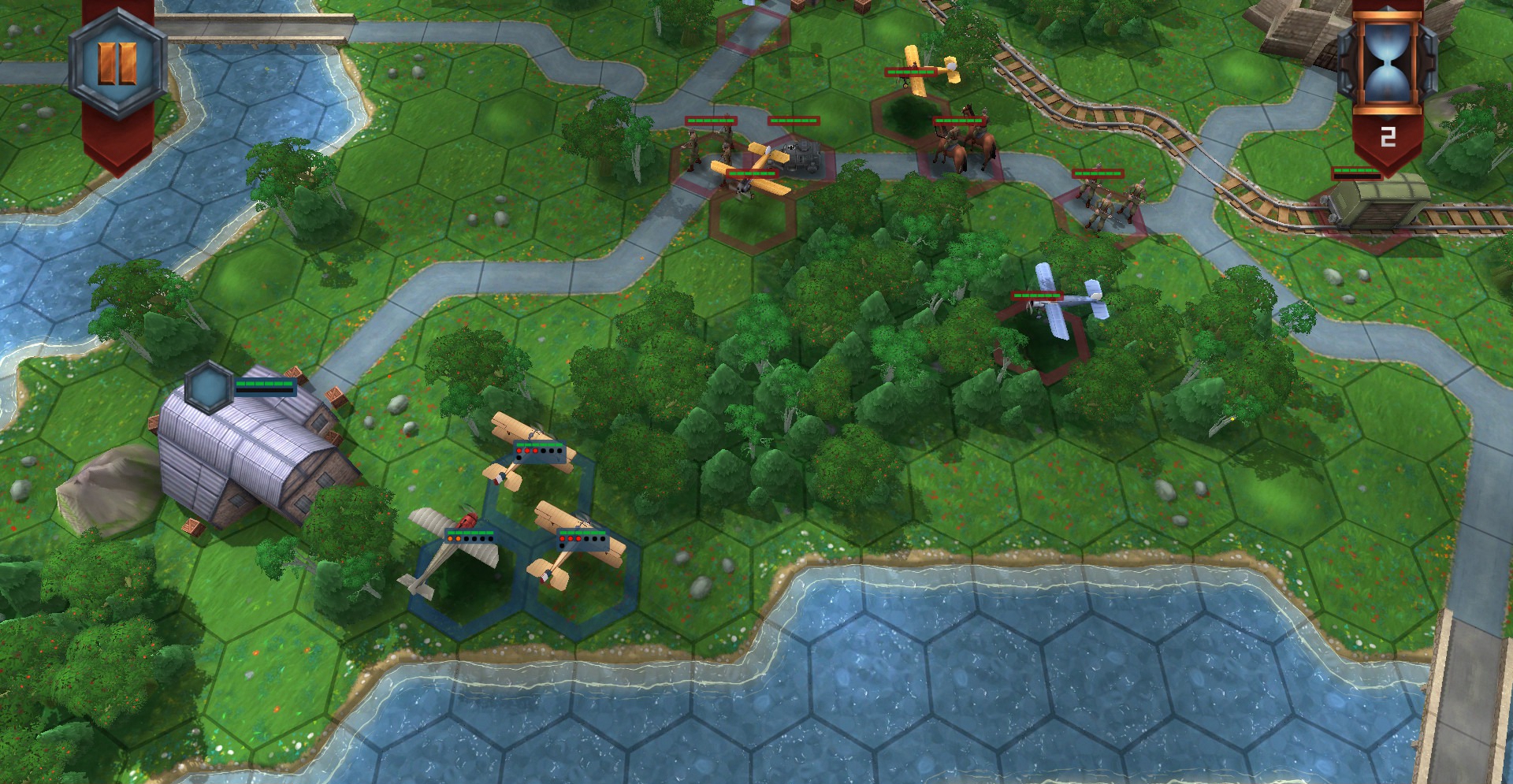 这样一来,玩家在游戏里光靠兵种搭配就得不到多少策略体验了,而事实上《战争之魂(Spirit of War)》更鼓励利用地形的因素去赢取战争。游戏的地图元素较为丰富,拥有森林、桥梁、铁路等多种战略要素,其中铁路是和很多兵种都有关联的,一些单位只能在轨道上移动,相对来说固定了范围,给了双方一个破绽的同时也让影响战况的因素变得更多。不过地图并不大,到达前线也只是一到两个回合的事情,单位快被击破了,可以把它调回营地维修,这让每一局游戏都要打上好久。