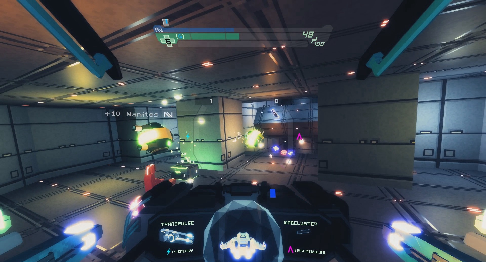 玩家除了可以消灭敌人获取他们的装备外,在探索空间的时候还能寻找一些其他物资。虽然敌人很强大,被虐了好几回,但是游戏的有一点值得肯定,那就是在狭窄的空间中横冲直撞不会伤血,否则天知道我会不会还没遇到敌人就把自己撞死了呢。