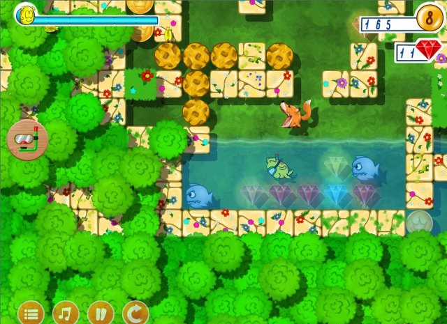 《丹科藏宝图(Danko Treasure Map)》采用动画卡通风格,操作简单休闲,在游戏中玩家控制着主角丹科在关卡收集各种宝石,最终到达终点既可。玩家需要注意的是,在某些宝石是隐藏在绿色的植物下面的,所以玩家如果想要完整收集到所有宝石,那么就需要翻找到每一片植被。当然丹科在移动的过程中可能会遭到一些威胁,比如落石。一些道具可以帮助丹科通过陷阱,玩家可以注意使用。游戏包含了一定解谜元素,玩家要合理规划行走路线,不让障碍物堵住前进的道路。
