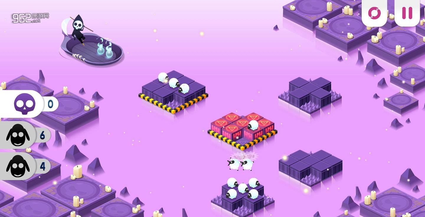 合并的方式简单,让不同平台的绵羊跳到同一个平台上即可;而分离就没那么简单,分离的方式很多,而且满血腥的,可以利用饿狼、激光栅栏等机关,或是直接让 它们跳进水里,把平台上多余的绵羊除掉。移动后最终的绵羊数量是取决于目的平台上浮板的数量。例如浮板有 4 个,那么经过过滤后的羊群就只剩下 4 只羊!