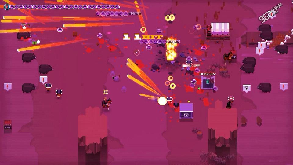 从倒下的敌人收集金币购买升级,并喝一点酒精饮料穿过黄沙漫天的西部。
