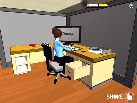 吸烟只能在作为休息室的阳台,当你在室内吸烟时有很大的几率会触发烟雾报警器,引起消防设施喷水,然后你又被炒鱿鱼。当然当数值即将归零,你能赌赌人品,短暂的点几下,以支撑到休息室。