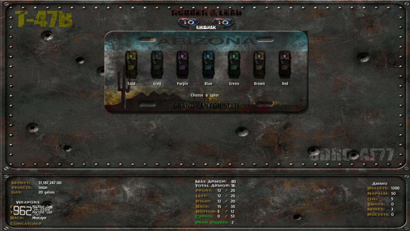 《橡胶和铅(Rubber and Lead)》是Omega Point Games制作的一款致敬1985年的《AutoDuel》的射击游戏。动作和角色扮演融入到了一次产生刺激的结合!你必须开着车横穿世界末日后的亚利桑那州,选择你的任务,升级你的车,装备你的武器,杀光你的敌人!警告:只开车不开枪是个致命的错误!