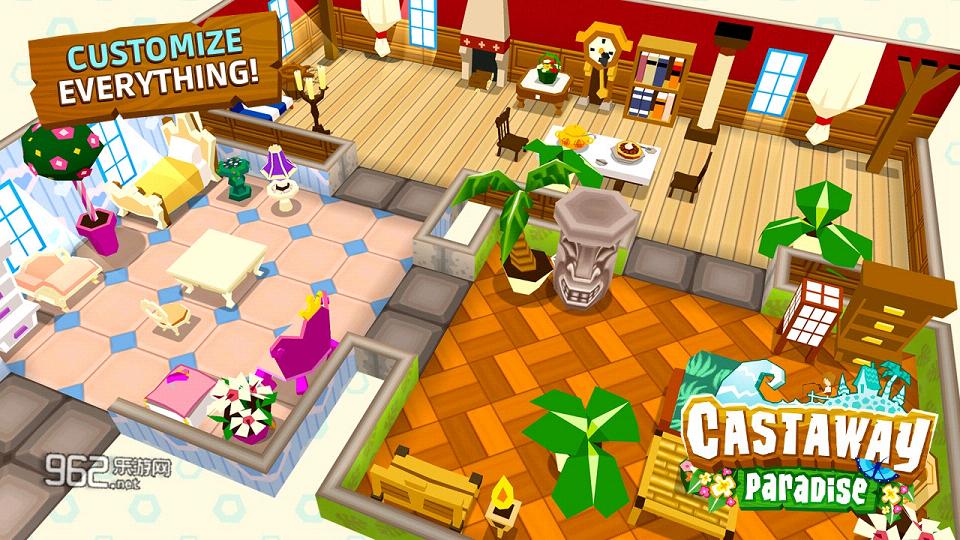在《漂流者乐园》中,玩家可以在岛上盖房子、种树和种植庄稼、开设农场养小动物等等,也可以去朋友的小岛拜访。还有数以百计的道具供玩家选择,你将通过基础材料道具制造出栅栏、帽子、鞋、旗杆、水井和雨伞等等。本作几乎囊括了同种类型游戏所拥有的一切元素,自由度较高,玩家可以尽情发挥想象力和创造力