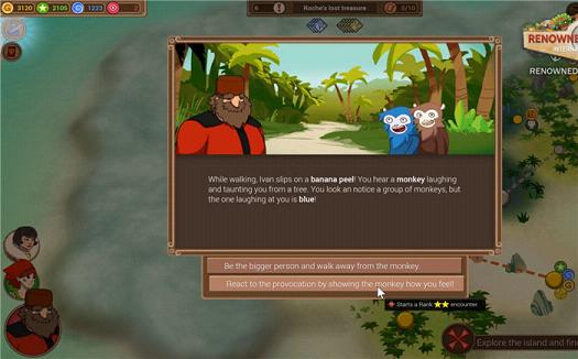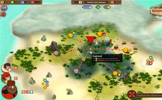 当你确定了宝藏的位置之后,就开始了回合制式的行动。作为探险队的领队,你要用能够得到的一切资源去探索新的土地。在这个过程中,你会遇到各种类型的敌人,他们可能与你刀剑相向,可能会跟你交涉,也可能是这两种方式的结合。在经历了一系列的冒险之后(比如加勒比海,玛雅古庙以及热带丛林等),你将获得宝藏,返回博物馆。