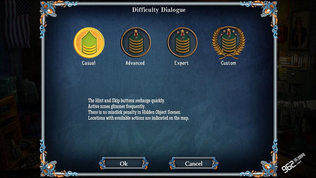 专家模式(expert):提示与跳过按钮恢复速度很慢,互动区域不会标示,在隐藏对象找物品场景中会有点错惩罚。可行动区域不会在地图上予以标示。