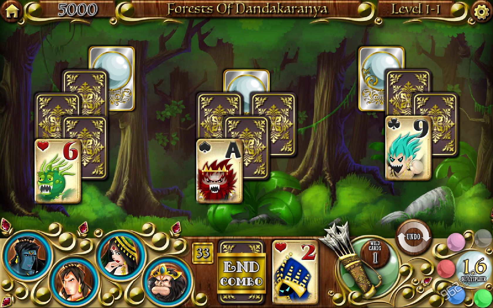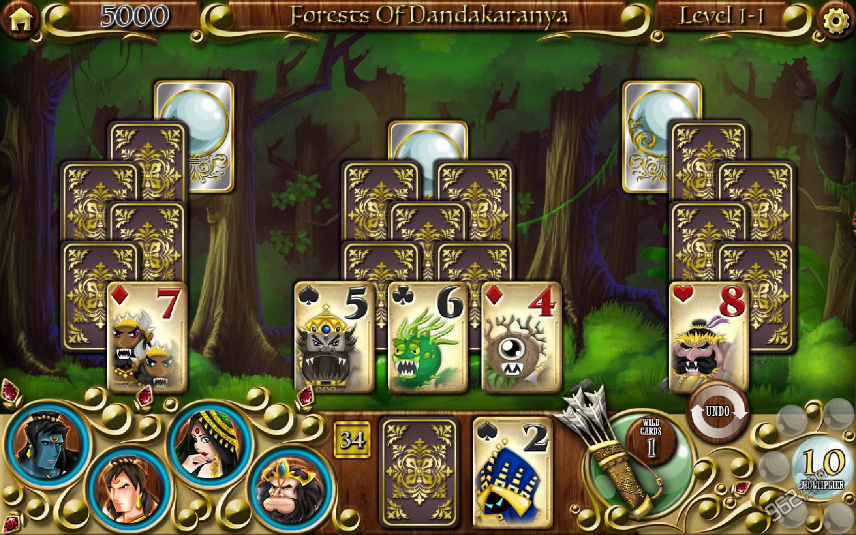 《接龙故事:西塔的任务(Solitaire Stories:The Quest for Seeta)》画风精致,音乐动听,玩法上有点类似蜘蛛纸牌,需要以降序或者数字消除纸牌。如果不小心操作错误还可以选择后退,撤销操作,不过撤销是有限制的,每关通关之后会有会根据你的用时进行评分,如果通过速度够快,会有特色道具奖励,随着游戏的进行,游戏可以使用的特色道具也会越来越多。