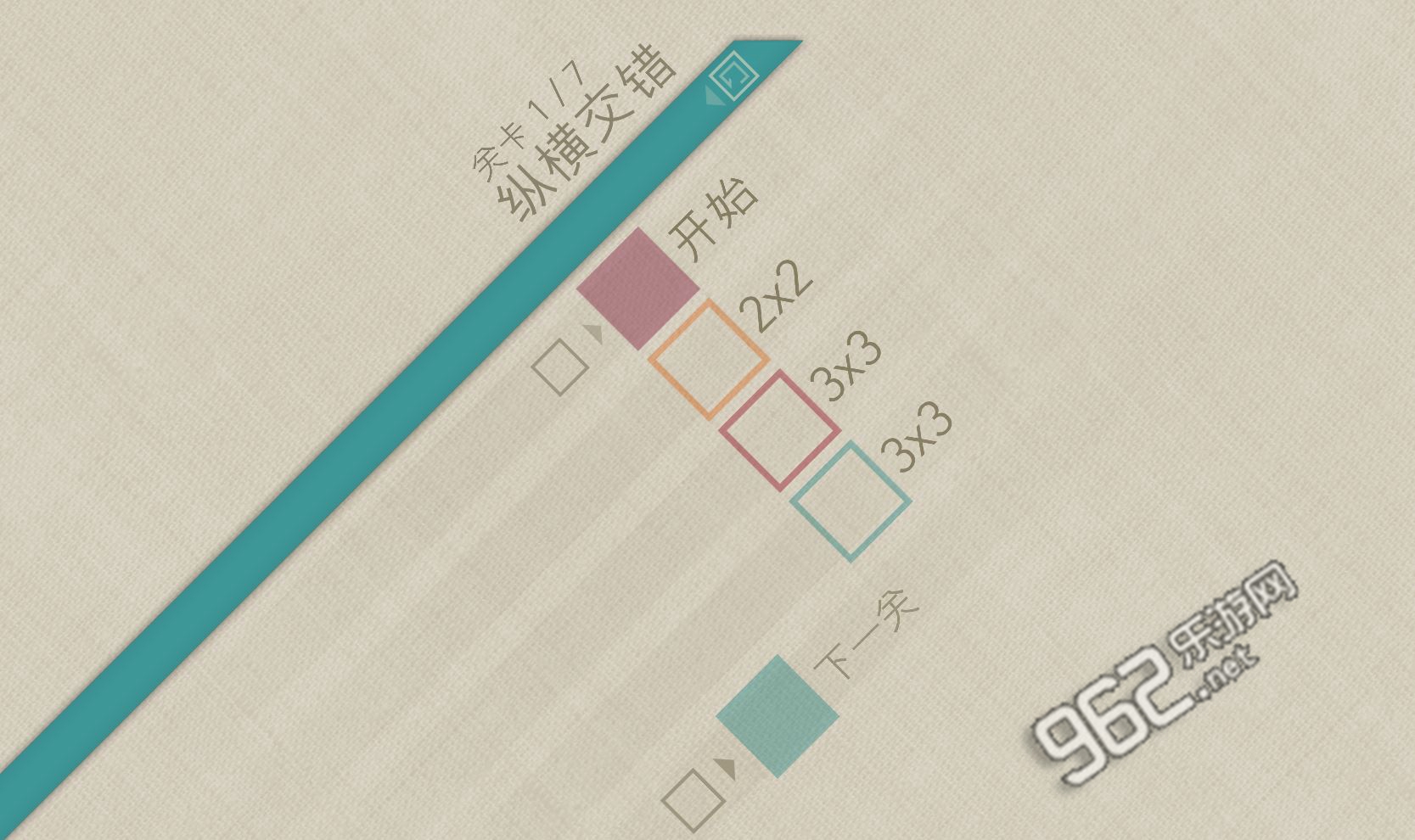 游戏一共有6大关组成,每一关都有着清新的小标题,每个大关里有4个小关卡,每个小关卡中又有着对应面积的关卡。比如2X2的小关卡里有4个关卡,4X4里就有16个关卡,而且面积越大的关卡,里面的关数越多,颜色更丰富,难度也更大。