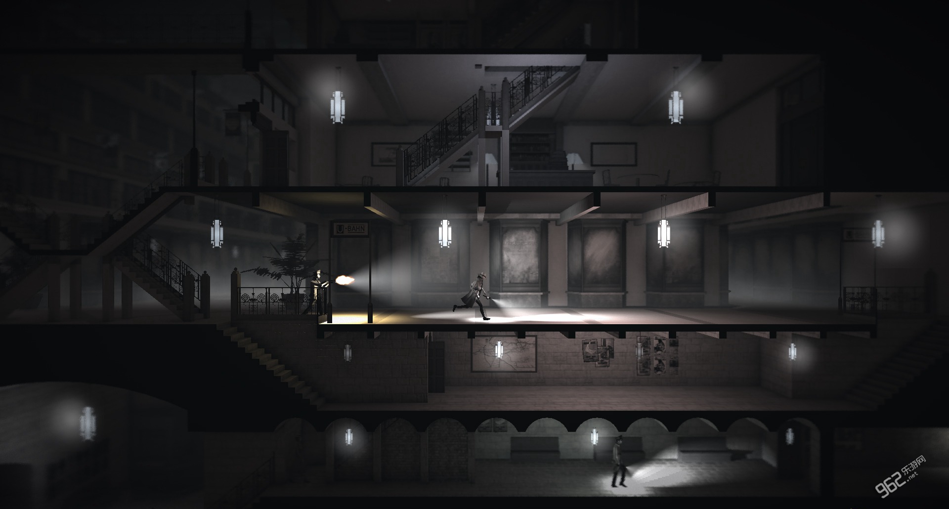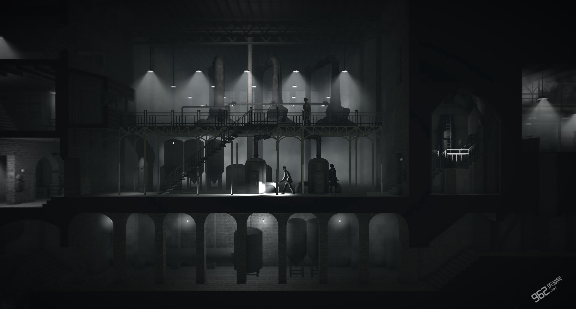 《黑白雨夜 Calvino Noir》这种黑白默片的画风,小编是非常喜欢的,游戏中雾色浓浓的雨夜,密集压抑的街景等画面,就如同在看一部年代久远的电影。而且这种黑白画风也为游戏增添了一丝神秘诡异的气息,与盗窃剧情可谓是不谋而合。团队系统的加入更是为本作增加了很多可玩性。