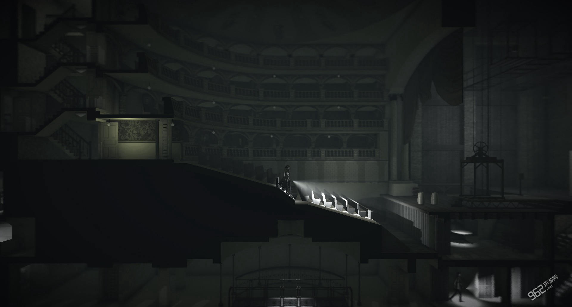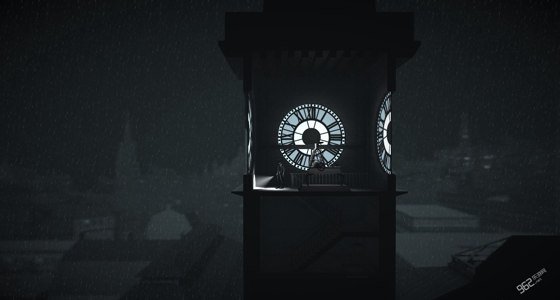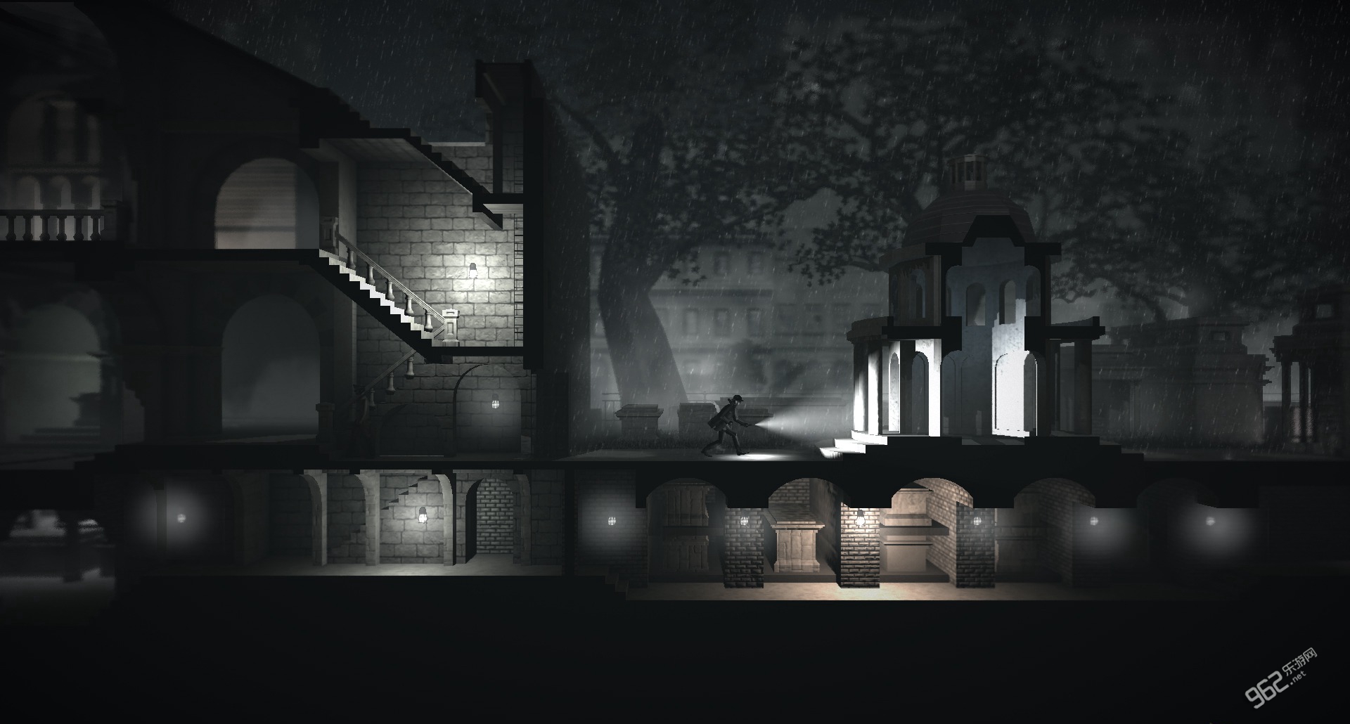 《黑白雨夜 Calvino Noir》是独立游戏开发者 Dan Walters 开发的一款解谜游戏,雾色浓浓的雨夜,密集压抑的街景,光影交错中如老式黑白默片的画面……无一不为其打上文艺的标签。令人意想不到是,这款充满艺术气息的游戏主题竟是关于盗贼。不过,《黑白雨夜》中的盗贼可非一般的泛泛之辈,堪称江洋大盗,他能在一众保安严防死守的情况下满载而归,靠的不仅是手脚麻利,还有一种叫“时移”的妙术。简单说来,就是玩家控制的盗贼能够将多个时空中的“自己”全部召唤到一起,通过默契合作,一方引开保安,另一方面猎取宝物。这种神奇的设定在游戏中也算是蛮少见了,令人不得不惊异于 Walters 的奇思妙想。
