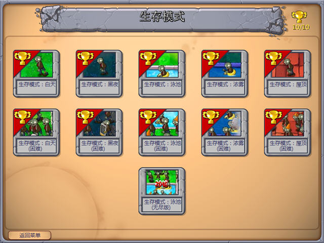 植物大战僵尸无尽版是玩家在通关植物大战僵尸后会开启的额外模式奖励,无尽版在小游戏中有3种模式,玩家可以根据自己的喜欢在小游戏模式中挑选。