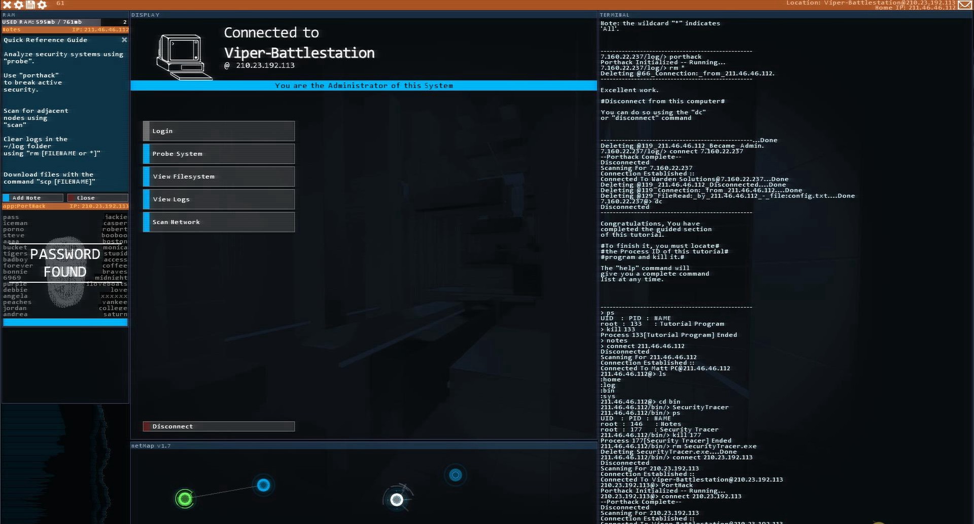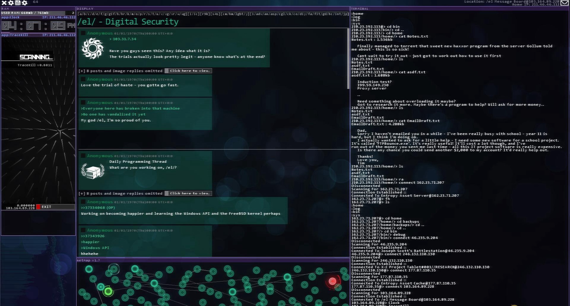 《黑客网络(Hacknet)》是一款现代的、超级逼真的黑客模拟游戏,一切都按照真实的网络界面和终端驱动。它讲述了最近意外死亡的黑客“BIT”的故事,而你,将作为他选中的对象,去完成一场独特的冒险。《黑客网络》中没有主角,只有做出指令的人,所以不要莽撞,它比你想象的更加真实。