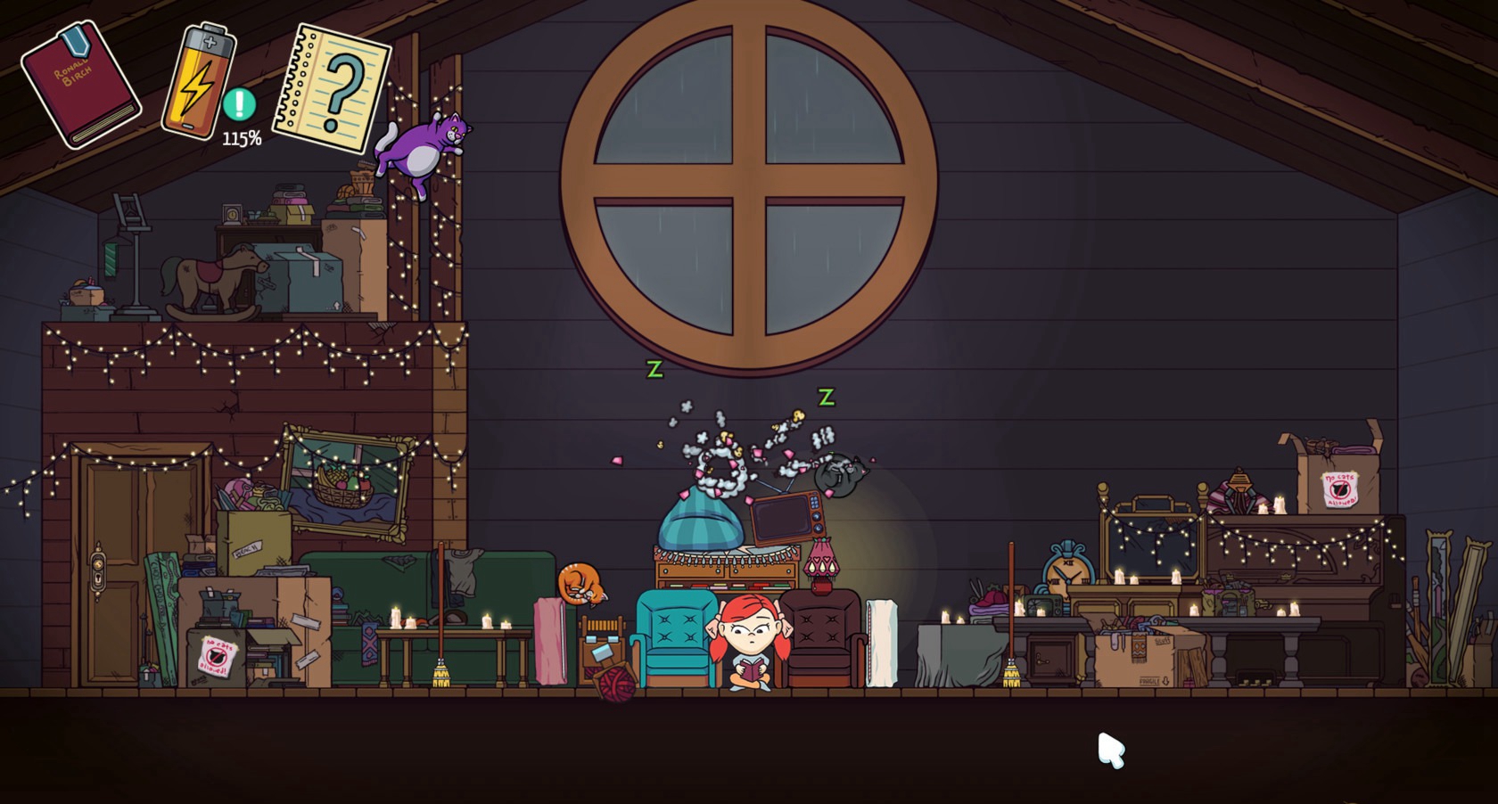 就画面而言,可能游戏并未给我们太多的惊喜,或者说留下深刻的印象。其2D呈现的景物既不美也不细,小女孩看上去甚至很像小孩的涂鸦,手指头粗糙得可以看见清晰的棱角。游戏整体色调暗淡,着色较为深沉,风格靠近欧美系低龄动画,不太符合亚洲审美。不过,老旧的家具、写实的喵星人设计倒别有一番风味。