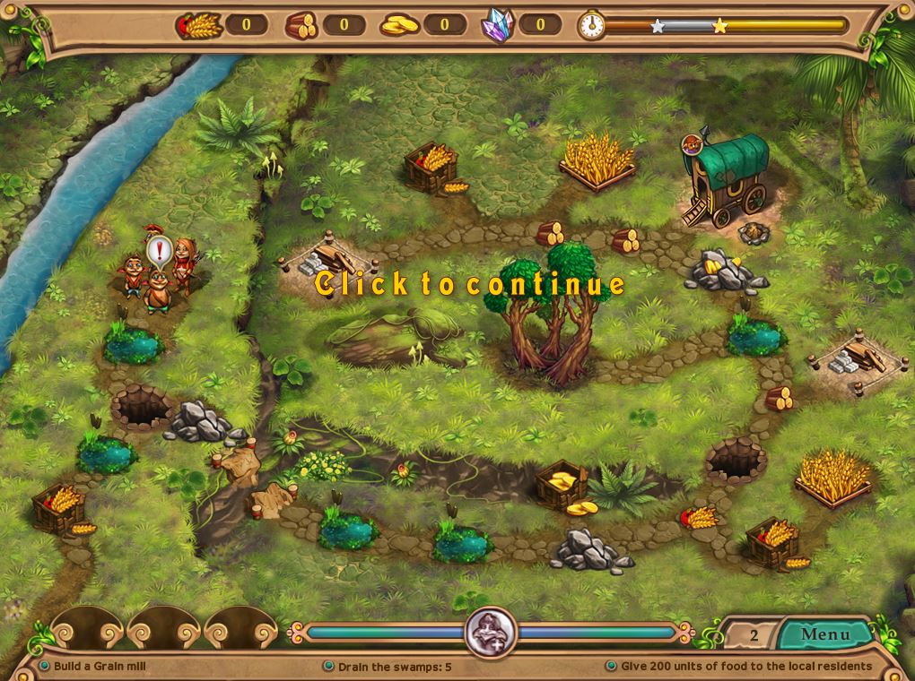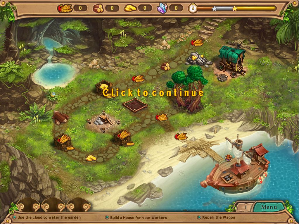 如同传统的时间管理游戏一样,每个关卡中会给玩家几个需要完成的目标,如建造什么房子,收集多上事物等,完成这些目标即可通关。