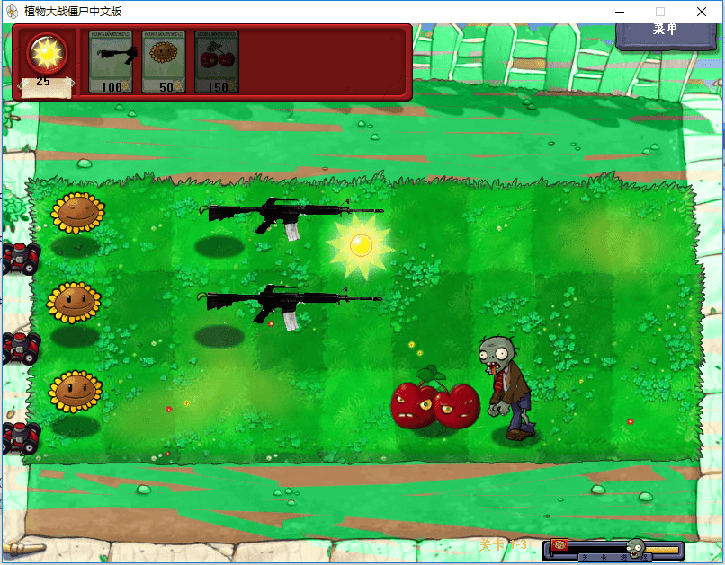 植物大战僵尸军事版游戏别名度娘大战兰州烧饼,将植物们全部的改为军事武器,让你拥有不一样的游戏体验,全部都是现代的武器,看着射击的感觉挺有真实感的,在电脑上玩更加的有氛围,来这里玩耍下同人制作的游戏,不妨来下载玩玩吧!