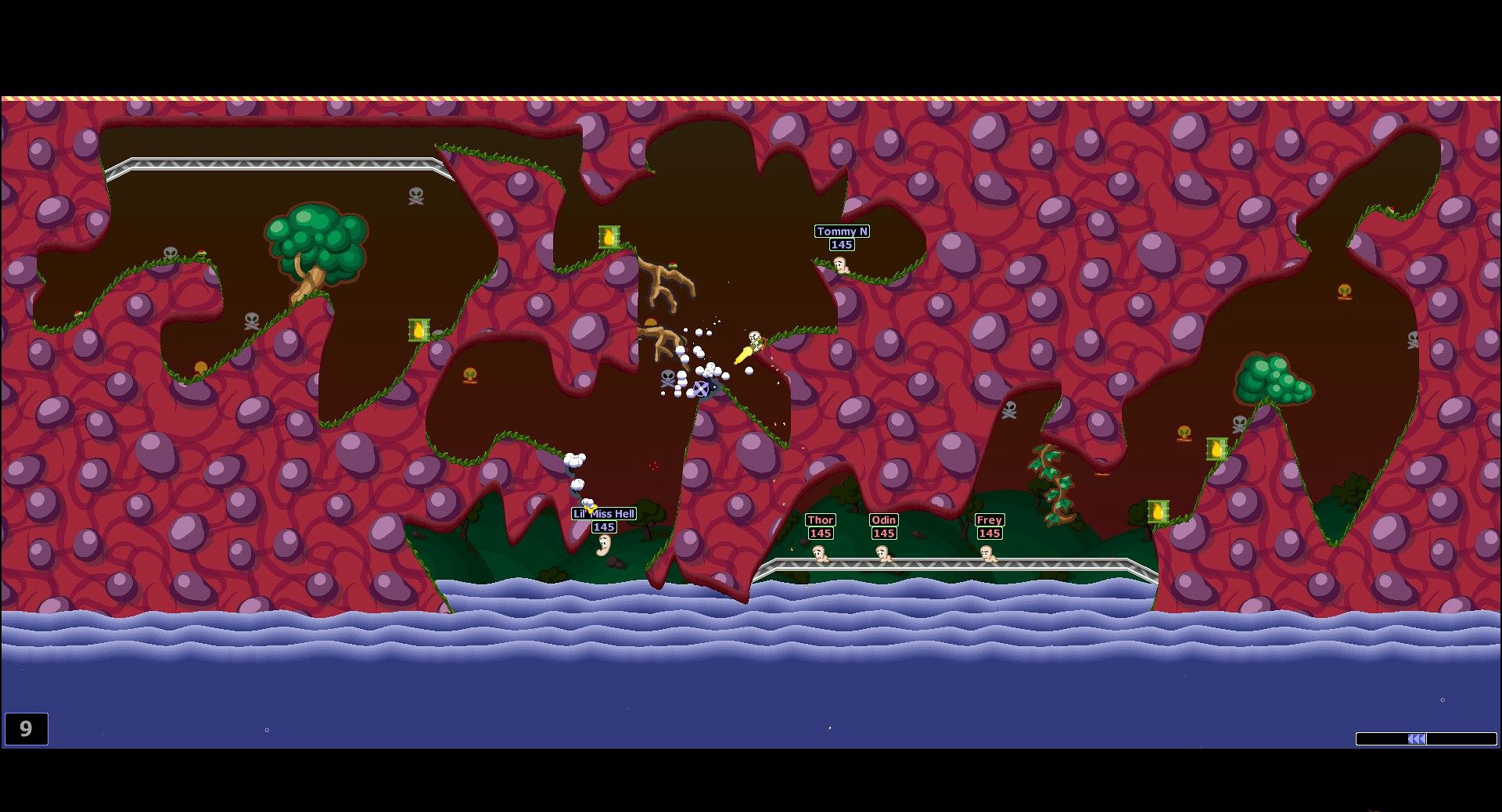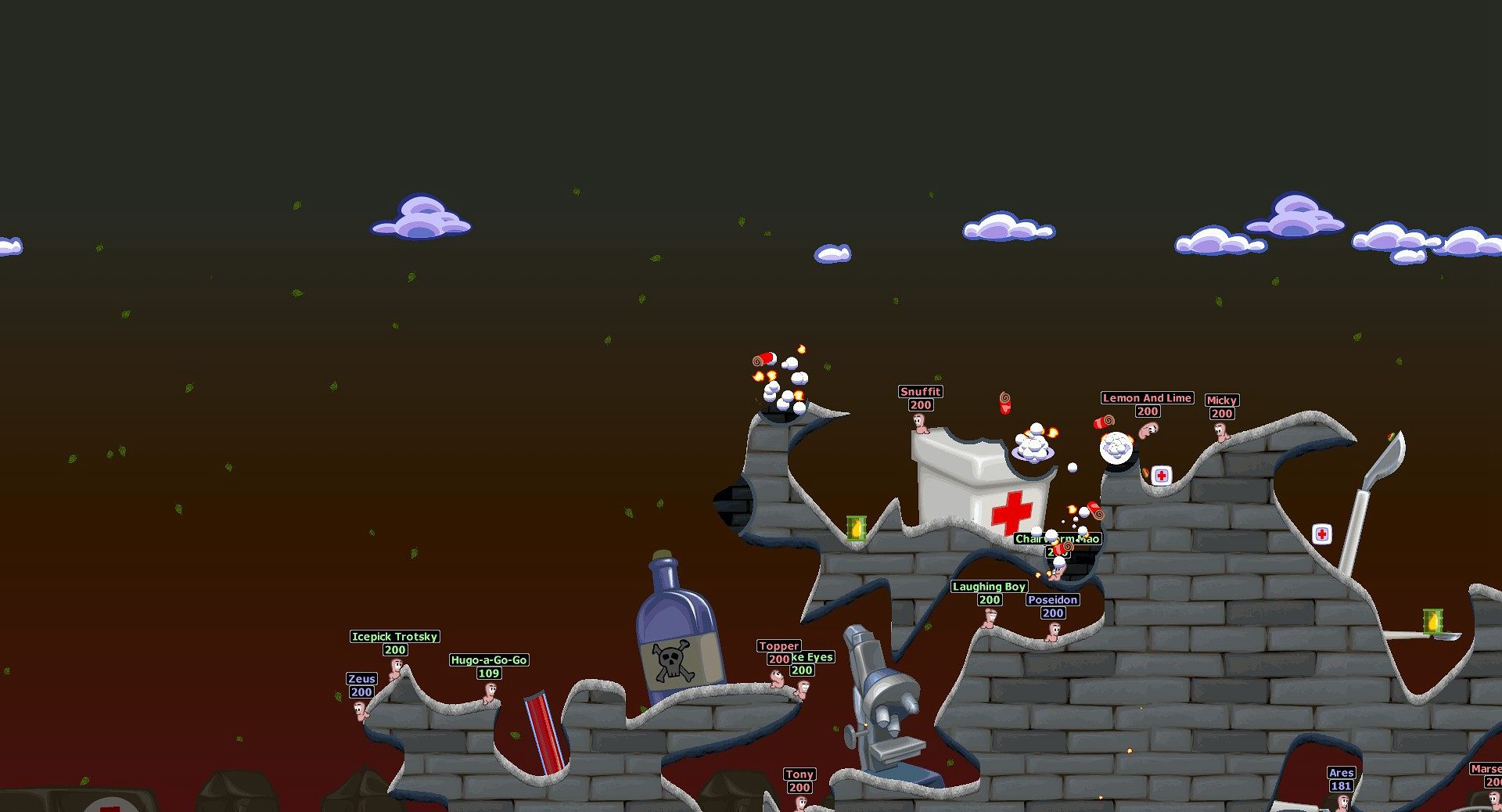 这些武器采用了一个相对深奥的系统,弹道、距离、发射力量、风向,及时的移动、以及可破坏的地形都是影响攻击效果的因素。(这套系统后来被疯狂坦克,坦克宝贝等游戏借鉴)如果玩家摧毁了油桶,燃烧的汽油或许会覆盖整个地面,这将引发连续的攻击并造成更大的伤害。总而言之游戏战斗的焦点是进行决定性的杀伤和快速的消灭行动。