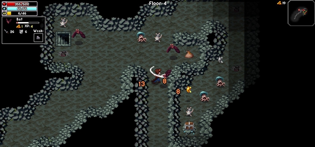战斗中如果玩家的生命值低于100时,游戏会给与玩家警告,玩家可以使用回复药水恢复生命值或者是使用逃生翅膀逃出洞穴,如果玩家继续战斗,一旦死亡所有进度都将消失。注意逃生翅膀并不是在商店中购买的而是在洞穴中寻找到的。