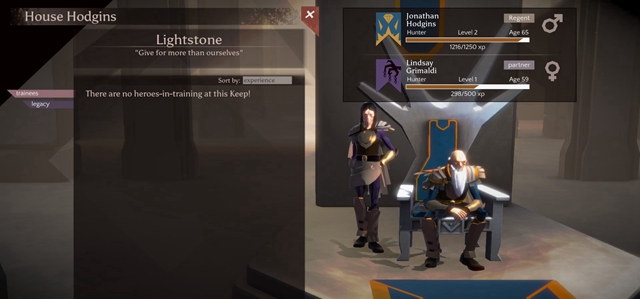 玩家将扮演不朽的霸王,几百年来一直在保护领土免于恶魔入侵。玩家雇佣的英雄们即使没有死在战场上,最终也会逐渐衰老,被时间带走,只有他们的宝物会在子嗣中流传下去。游戏中最重要的就是把握好让英雄卸甲归田的实际,让他们回去成家生子,为你留下下一代英雄的火种。游戏中的死亡是不可逆的,就像《幽浮》一样,不过真正英雄传承下来的血脉将一直辅佐你完成霸业。