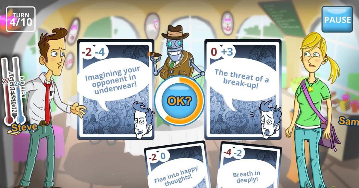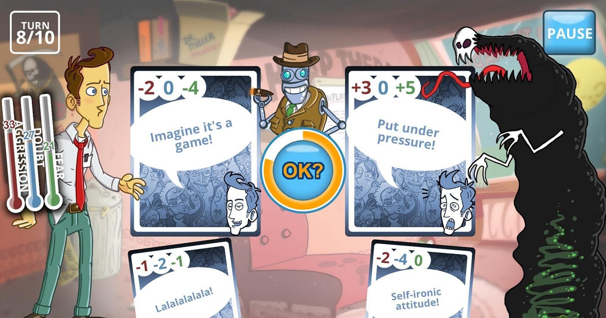 《弗洛德机器人》的玩法比较有意思,你要根据对手的话来决定接下来说什么,如果答错了你的消极情绪就会上涨。游戏不支持中文,推荐英文好的玩家可以试试。