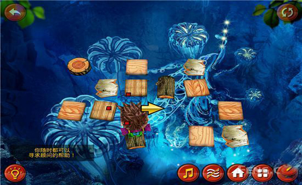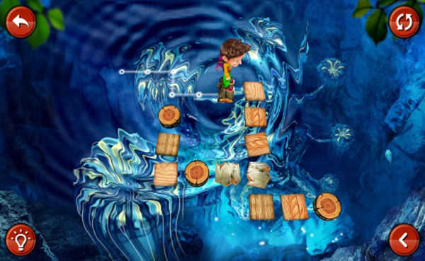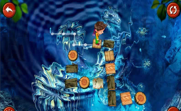 游戏采用了3D立体制作,玩家们以第三人称俯视视角观察整个挑战过程,我们的小男孩只身进入一个魔幻丛林之中,这里有五彩缤纷的景色,也有清澈见底的水潭,为了寻找到出去的道路,我们要踏着水潭上的木板走过去。游戏画面色彩丰富,周围环境色调沉稳,而中心区域水潭有显得清澈明亮,两种底色形成强烈的对比,让玩家们视觉自然保持在水潭区域内。