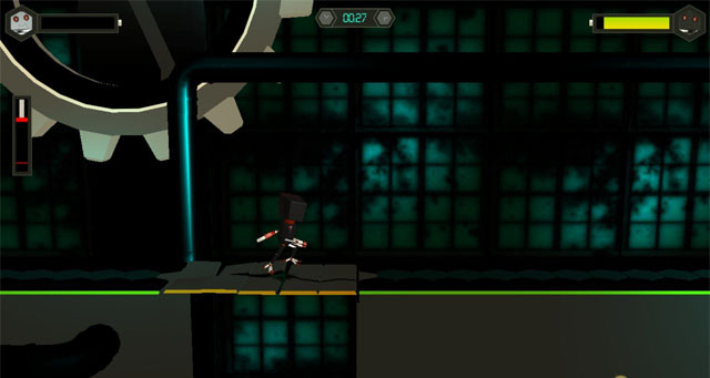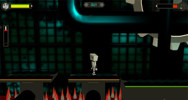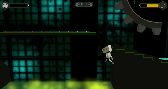 玩家将同时操控一黑一白两个机器人,带他们逃离实验室。每个机器人都有一定的电量,注意,电量即是血量,电量消耗完机器人就会死亡。除此之外,在游戏过程中玩家还会遇到一些障碍物,比如说尖刺,或者是水池,不安全通过这这障碍物就会死亡。