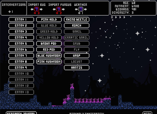 这是一个没有阳光、只有真菌和昆虫的世界,通过施以营养物质以及缓慢持续的降雨,你就是这个世界的上帝,通过你的努力来维持这个世界的运转。