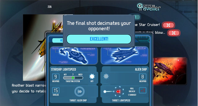 《星舰旅行者(Starship Traveller)》是Tin Man Games制作发行的一款科幻题材冒险有线。你的星舰被黑洞吸入,星舰旅行者出现在了黑洞的另一边。你是星舰“旅行者”的的舰长,她的命运掌握在你的手上。你能发现回到地球的方法吗,还是说你与你船员将永远徘徊在虚无的太空中?
