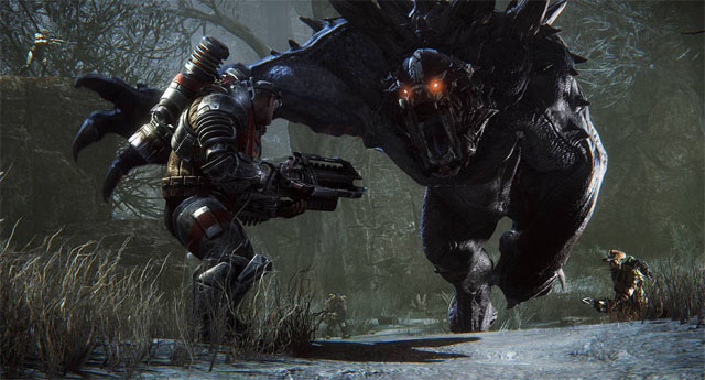 在《进化》这款全新的多人对战类型的科幻FPS游戏中,将由4名玩家扮演外星猎人,对抗由另一名玩家控制的怪物,每一个猎人都将拥有自己独特的装备和能力,当然随着游戏的进行,玩家所控制的怪兽也将越来越强,小编在了解到这些游戏的信息后发现这款作品的题材及游戏方式和《原始杀戮》非常相似,然而在看了爆出的宣传与试玩视频之后顿觉大厂商的大制作不同凡响,不愧能在E3游戏展上独领风骚。
