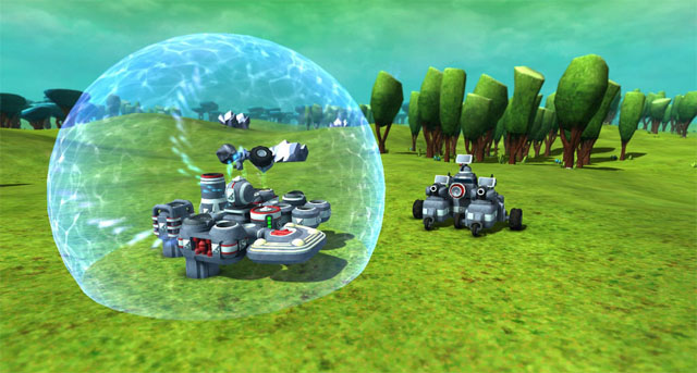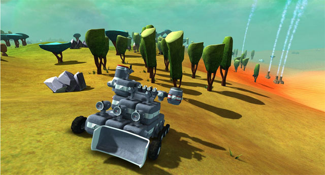 游戏中的树木和矿石是可以破坏的,掉出来的材料就能用来建设基地,游戏整体是比较轻松愉快的,游戏中最大的乐趣就是设计出各种各样的载具,非常适合爱创造的玩家。两种不同的游戏模式让你既可以和电脑对战同时也可以进行玩家间的联机游戏。