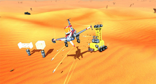 在游戏中你可以用各种基本的组件组装出任何你能想象出的载具,利用这些载具进行战斗,摧毁敌人。如果你摧毁了敌人,那么敌人的载具就会变成碎片,你可以拿来安在自己的载具上,随着你击败敌人数量的增加,你将会越来越多的部件,你的载具就会越来越大,越来越厉害。并且你可以发挥你的想象创造出各种五花八门的载具出来。