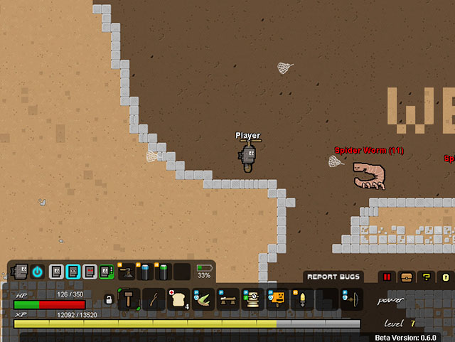 与怪物的战斗武器必不可少,使用的武器必须先装备在快捷栏里,按数字键选择和切换(近战武器小范围攻击;远程武器攻击范围广且没有弹药限制,武器也无耐久,用起来更像是魔法)。点击鼠标左键挥砍或者开火。