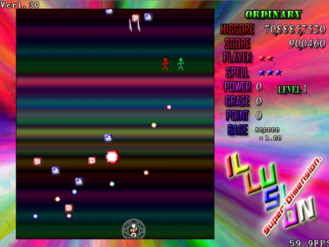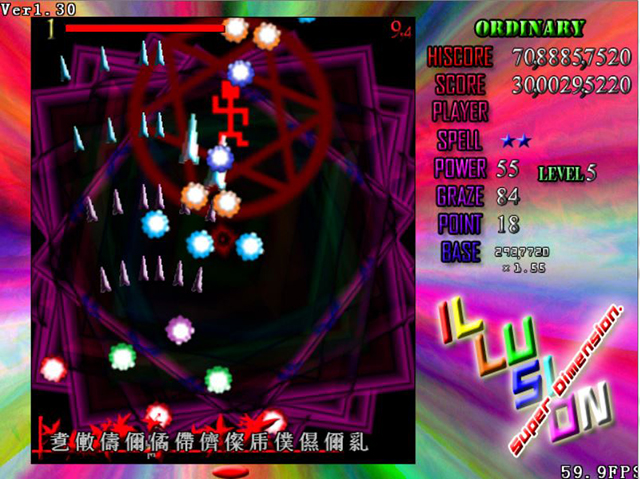 《幻象超次元(Illusion Super Dimension)》是一个打东方系列打到超L级的魔人制作的同人弹幕射击游戏。这款游戏被贴上了“精神污染”的标签,七彩霓虹灯效果的绚丽弹幕会让你眼花缭乱。