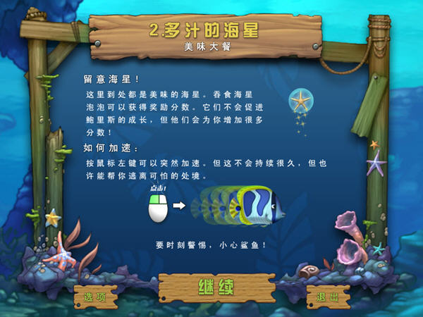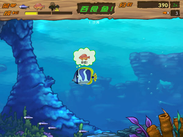 在深海里弱肉强食,弱小者永远都是会被更大的给吃掉,需要不断的去吞食比自已更小的鱼来增强自已的大小,吃比自已小的鱼也要防止比自已大的鱼给吃掉。和一代没有区别,用鼠标控制鱼儿游动,左键可以短距离加速,右键可以大口地吸入小鱼。上手度简单,手感也非常好。