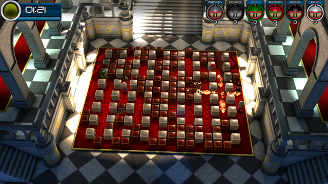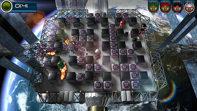 游戏的目标很简单,消灭屏幕上的其他球员。玩家在类似棋盘上的场景上移动,使用炸弹炸掉障碍物,除了获得卡牌增加炸弹的威力外,还要在限定的时间内消灭其他敌人。