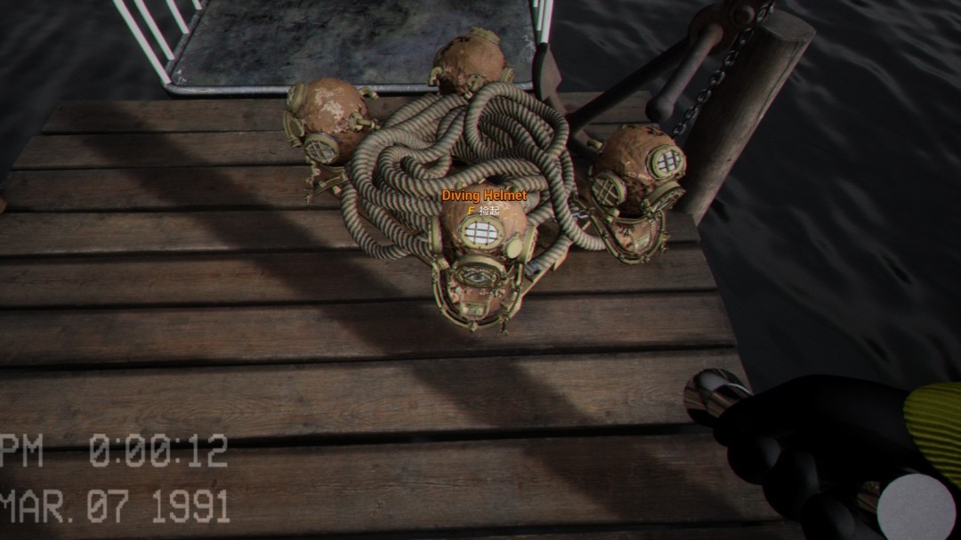 然后在桥的尽头捡到潜水头盔,带上后进入笼子