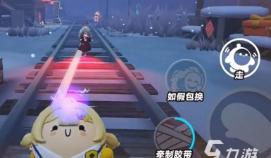 还有一个技能是牵制胶带,可以丢出胶带卷去粘住追捕者。这个技能用起来有点技巧,需要围着追捕者逆时针绕圈,来增加缠绕进度。缠绕成功后,可以让追捕者减速,而且减速效果会越来越强。实战中配合队友使用效果会更好