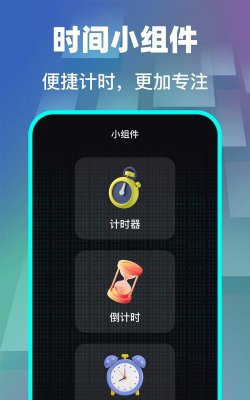 打开之后能够带来醒目的数字电子表显示,方便在各种角度直接进行查看。有着多种不同时间管理方式,包括倒计时和闹钟以及计时器等。还可用于辅助学习和专注力训练。不用的时候也可以当做是一款美化手机桌面的小工具,不会占用空间和内存。