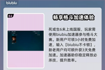 新用户注册并完成首次登录,即可自动获得24小时全功能免费加速时长;所有用户均可参与限时兑换活动,输入专属口令【biubiu001】,即可额外解锁三天加速权益。两项福利叠加后,新用户最高可享96小时无限制加速服务,全程零费用、零门槛、无需绑定支付方式。