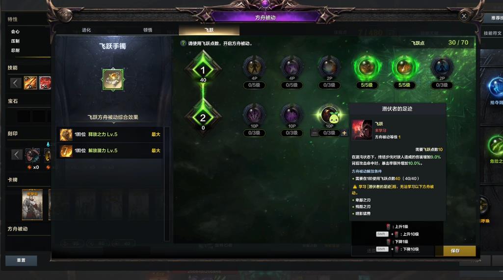 在职业铭刻里面首选怨恨、奇袭、尖刺、咒术等全部都可单挂一级,再搭配上二级肾上腺素。不推荐携带迅捷利刃,是因为该铭刻虽然能提升30%移动速度,但是释放技能时无法享受该加成,实用性较低。月声铭刻的效果是开启Z键后,会重置空格闪避技能的冷却时间,快速打满能量条后衔接红技能。便能形成能量积累,开启Z键,打出红技能爆发的循环,因此技能构筑需以能量获取技能加上红技能为核心。在红技能里建议优先搭配高级的伤害宝石,其他能量获取与增益辅助等技能推荐携带减冷却宝石即可,来提升技能循环效率。
