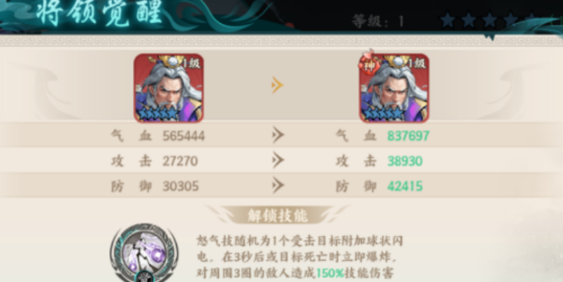当全部前置条件达成后,即可进行首次觉醒。本次操作需消耗10颗觉醒石,成功后武将头像右上角将新增一个白色“神”字标识,即为第一阶段觉醒完成标志。觉醒生效后,武将基础属性、技能效果强度及怒气值上限均会获得显著提升,具体增幅因武将技能定位而异。完成首阶后可继续进行二次觉醒,同样消耗10颗觉醒石,完成后“神”字标识将由白色转为青色,颜色变化直观反映觉醒层级进阶,便于玩家快速识别当前武将所处觉醒阶段。