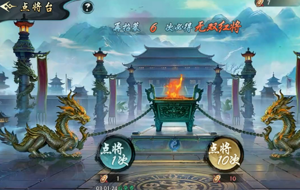 关于点将令的实际用途:单次普通召唤消耗1枚,十连召唤固定消耗10枚。抽取结果涵盖红将(最高品质)、橙将、紫将及对应武将碎片。尽管存在概率波动,但游戏内置保底机制确保——累计召唤达30次时,必得一名红将。该规则对零氪玩家意义重大,意味着仅靠日常积累,无需额外付费,同样可逐步构建全红将核心阵容。按每日稳定获取2–3枚计算,约需45–60天即可达成首轮30抽保底。