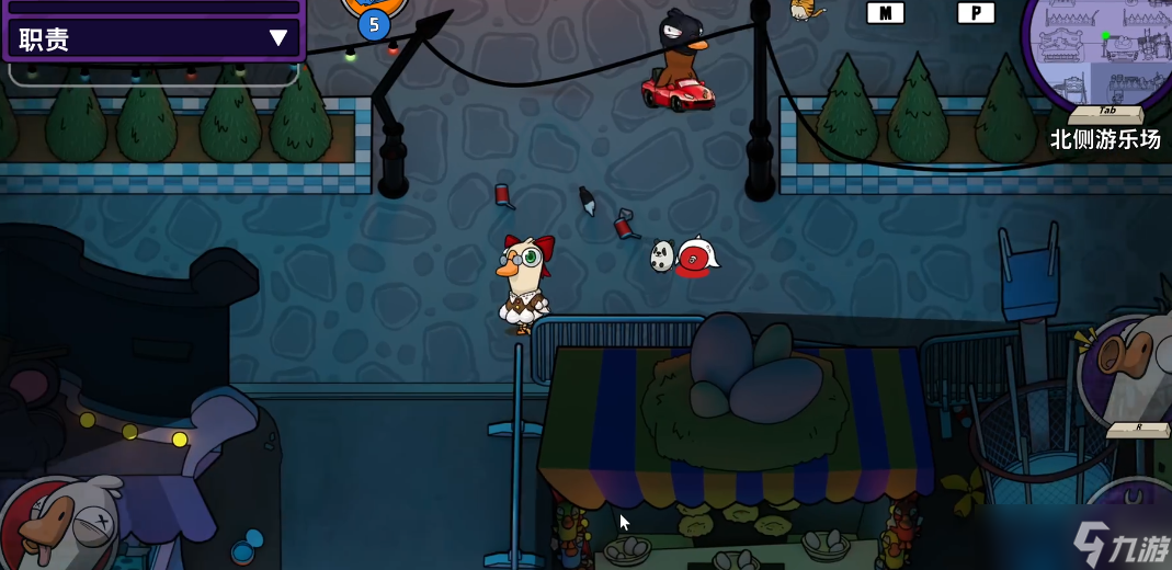 玩家需要精妙地平衡任务进度与行为伪装。必须规划路线以尽快完成任务,避免被另一只呆呆鸟捷足先登;另做任务的过程不能表现得过于急切或孤立,否则很容易引起其他玩家的怀疑,从而被盘问出身份。在游戏中后期,玩家需要根据箭头指示寻找目标,并选择合适的机会下手,这个过程同样需要借助混乱的局势来掩盖自己的行动。