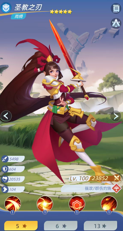 灼烧队的物理端核心输出为五星角色尚绮。她拥有对敌方全体造成95%物理伤害的群攻技能,并自带30%概率附加【灼烧】效果。该状态每回合造成施法者攻击力20%的真实伤害,可持续两回合,且最多可叠加至5层。随着角色成长,其灼烧触发率提升至40%,伤害增幅同步提升至114%。此外,尚绮还具备治疗效果+10%与每次行动后自身闪避率+10%的被动增益,使其在站场稳定性与持续输出能力上均表现优异,完全胜任灼烧队主C定位。