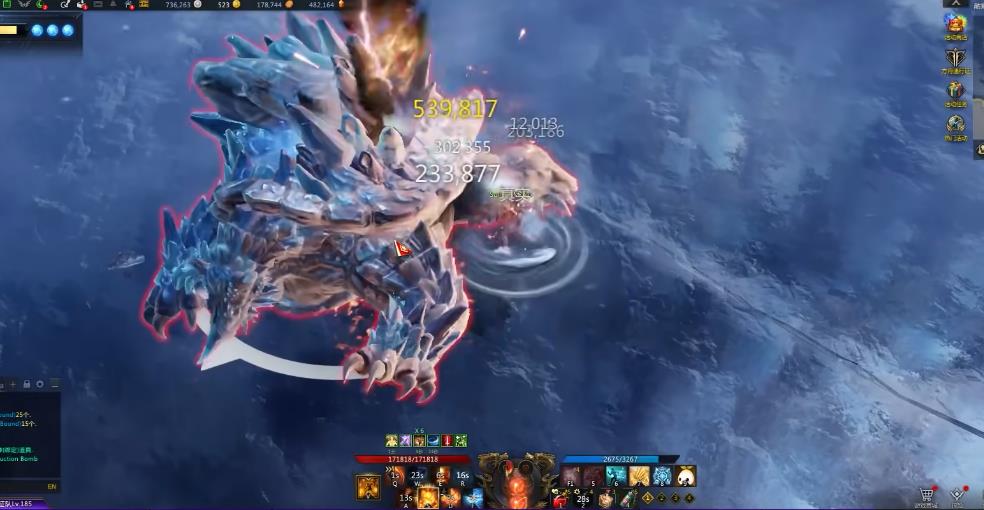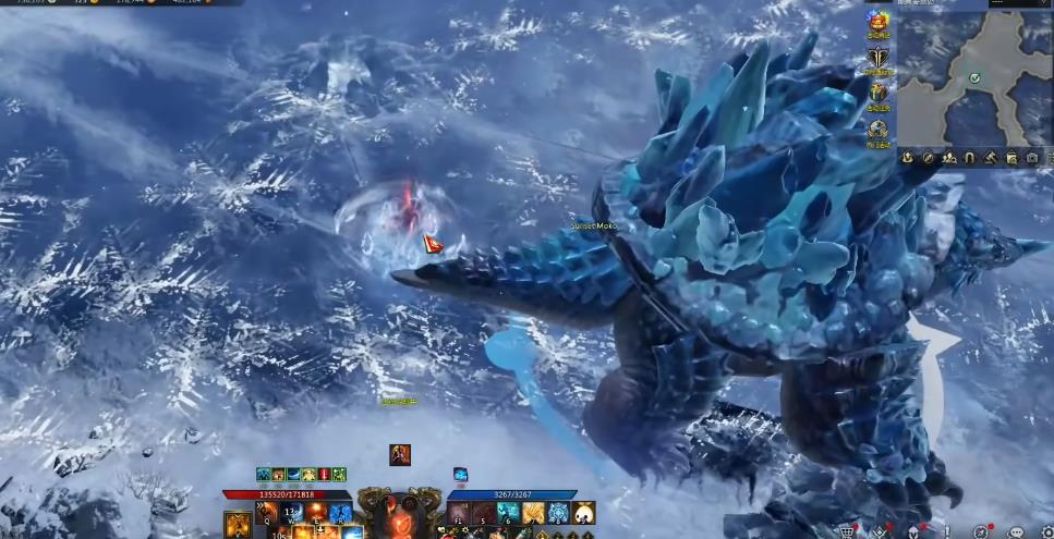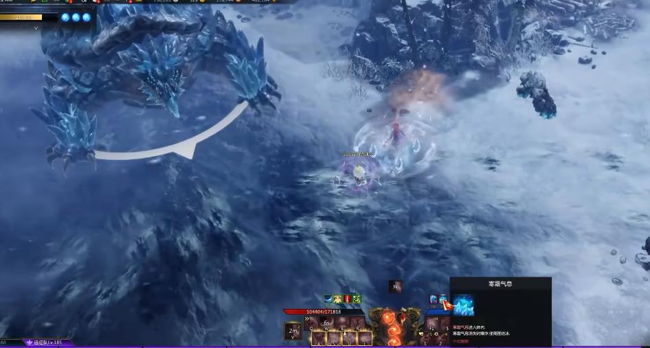 如果玩家被其命中或达到指定时间,该单位会形成特定区域,区域内的玩家将受到减速效果,减速层数最高可叠加至5层。在进入第二阶段时它便会在原地蓄力,场地外围会生成一道冰墙,随后会发起两次下落攻击。第二次下落攻击结束后,需前往冰墙位置将其破坏,以规避后续冰墙引发的爆炸伤害。如果队伍配置有治疗职业,也可开启觉醒技能抵抗伤害,同时对其进行完整输出。