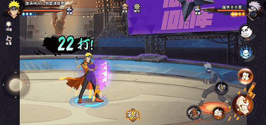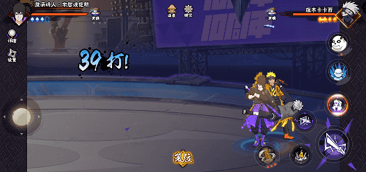 佐助登场时,以二技能起手,后摇期间点按奥义释放连携技:雷·尾兽玉,连携技结束自动切换成强化状态下的鸣人,普攻2A扫起敌人,随后释放强化一技能及连携技:灼遁·光轮疾风漆黑矢零式持续输出。