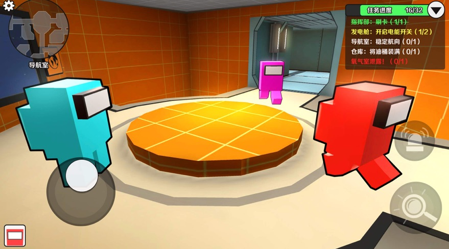 本作以全3D建模构建沉浸式太空舱场景,飞船内部结构精细还原,任务操作界面高度拟真。开局需选择船员或冒充者阵营,双方目标截然不同:船员需协作完成指定维修任务并识别淘汰冒充者;冒充者则通过伪装、破坏关键系统(如氧气供应、电力中枢)制造混乱,伺机清除船员。发言环节与投票机制贯穿整局,推动高强度社交推理体验。