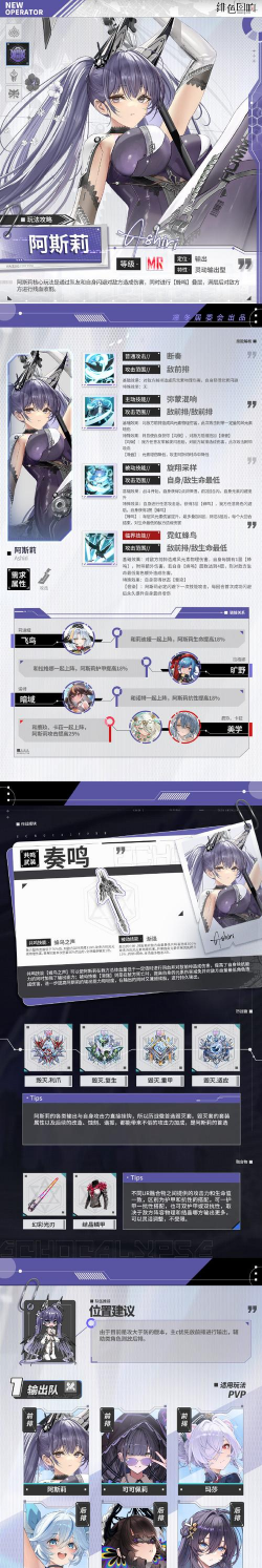 在上述介绍中我们了解了阿斯莉有很多自保手段,但是都依赖临界技能霓虹蜂鸟的启动前置条件,那么阿斯莉其实还是很惧怕在未开出临界技就暴毙的情况。所以配队围绕强化生存、续航兜底。