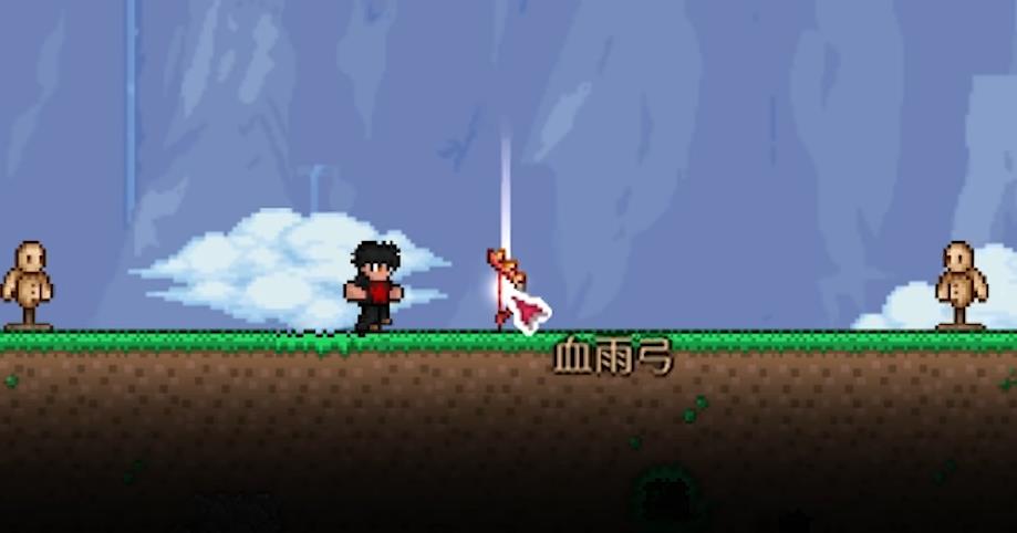 血雨弓拥有14点基础伤害,与恶魔弓持平,19的使用时间让其在肉前弓类武器中处于射速第二。还拥有每次攻击向瞄准位置降下1-3发血雨箭的空中落箭机制,算是肉前唯一具备多重射击能力的弓。该武器会将所有装备的箭矢全部都转化为血雨箭,且仅继承箭矢面板伤害,因此优先搭配微光箭使用。