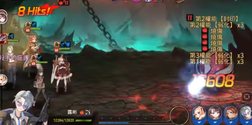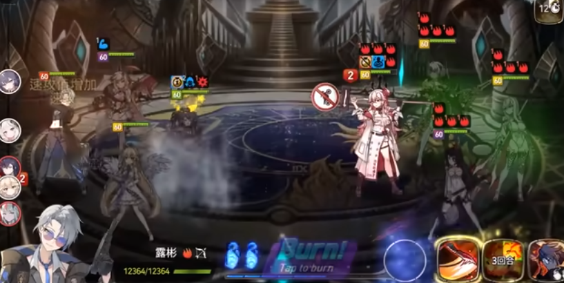 三技能也是AOE攻击,可以延长目标一回合除了硬控之外的负面效果,然后造成两回合破甲,如果没有进入冷却则队友额外回合开始时露彬能获得速攻buff,同时自拉百分之二十五。烧两个魂能在回合结束时激爆出血和烧伤,三技能跟二技能联动性很高,速攻buff配合二技能百分之五十自拉就能自拉百分之百,之后打出三技能延长二技能的烧伤,并让烧伤能享受破甲的增伤。不过三技能不能无视抗性,因此延长debuff回合数和破甲就又要过两个固定抵抗。